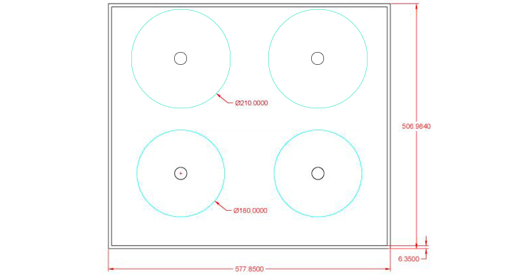 | Dimensione del punto di ebollizione | 2 x Ø 210mm, 2 x Ø 180mm |